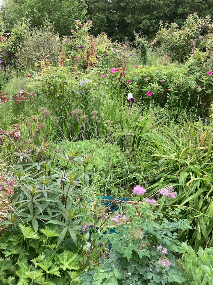Along with all the other areas of lawn, hedges, vegetable patch, orchard and copse, 18 long wide borders of shrubs and perennials plus a whole Cottage Garden is an awful lot to maintain, for two old codgers.