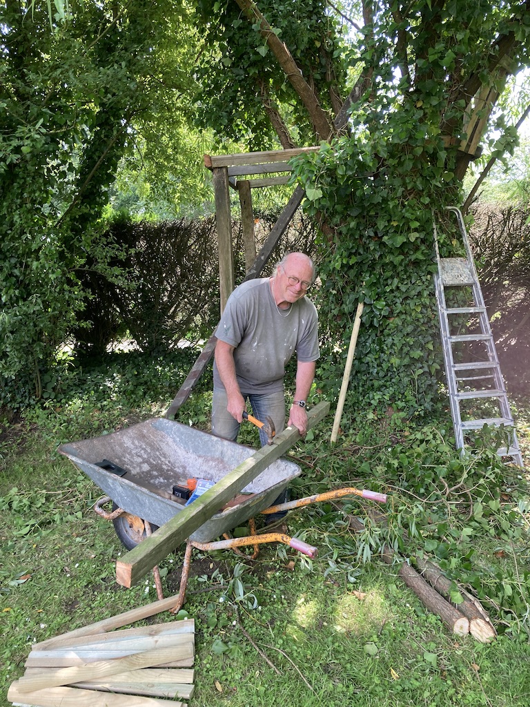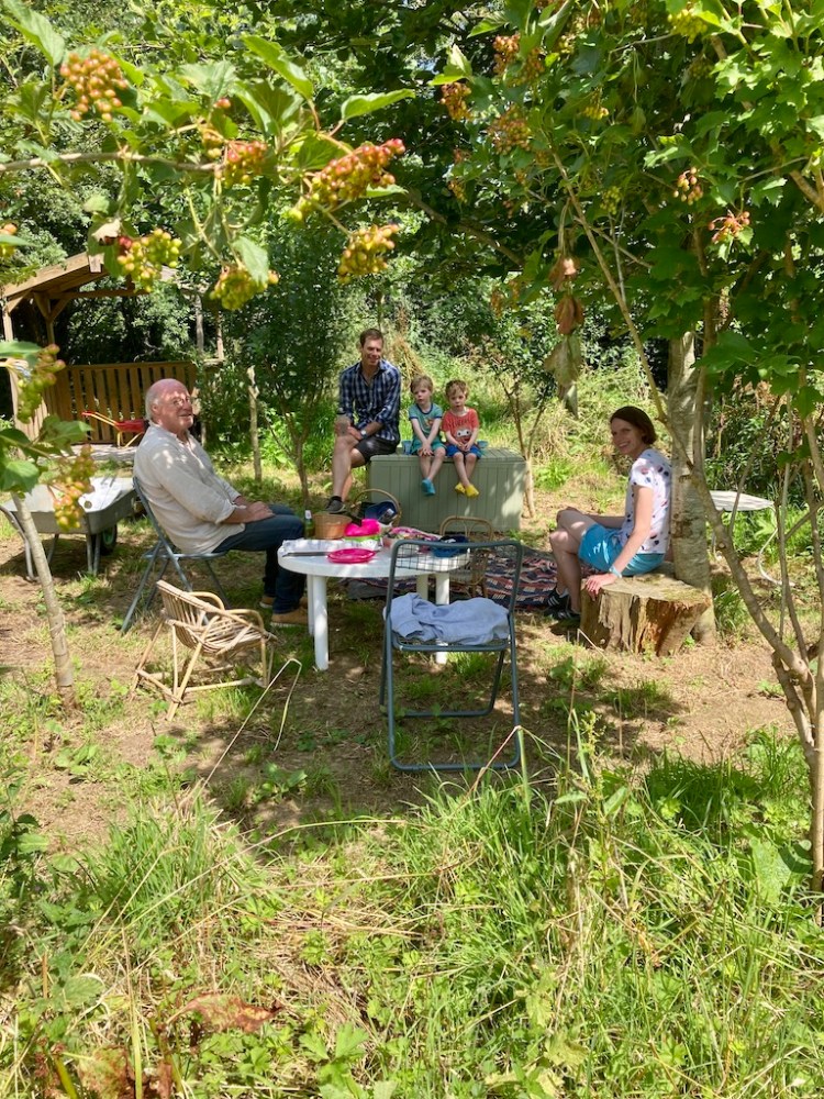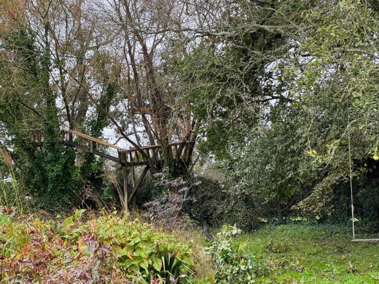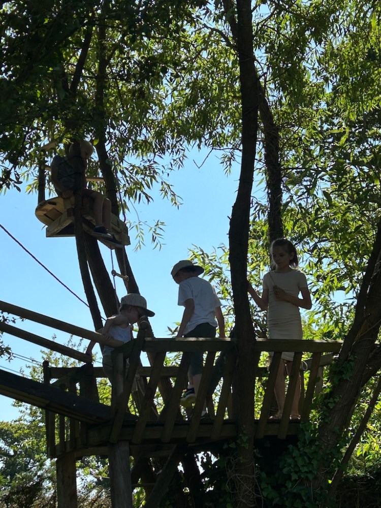 The Cotentin Cote Jardins flyer mistakenly only gave a tiny handful of the dates that the garden was supposed to be open, so we had few visitors this summer – the figures would have been COVID-affected as well of course. We were really pleased that the family were able to come to stay over the summer though, and got to work making some special areas for them. Nigel constructed a Tree House for them at the end of the pergola.