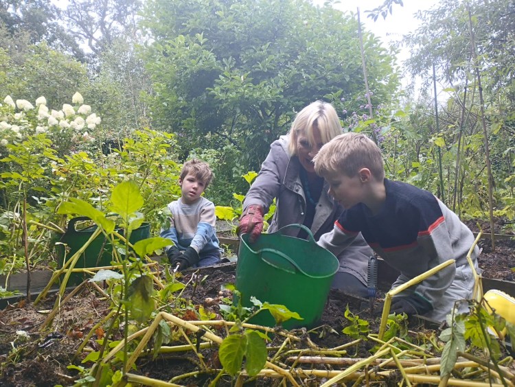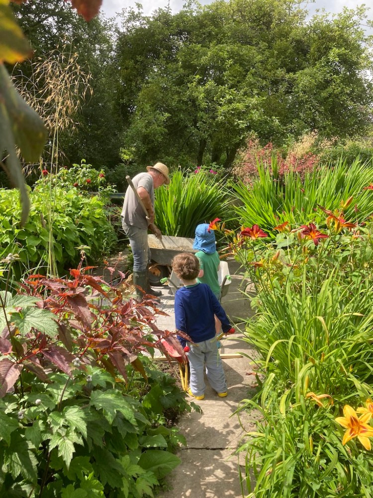 Arthur and Stanley helped Grandad make the paved areas among the flowersThe new paved areas in the borders – perfect for an afternoon cuppa!