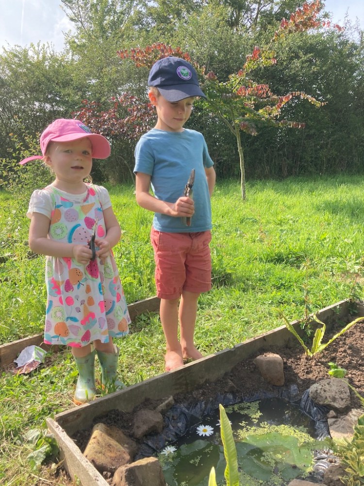 I also turned one of the nursery beds by the greenhouse into a Grandchildrens’ Flower Bed for them, complete with a tiny pond.