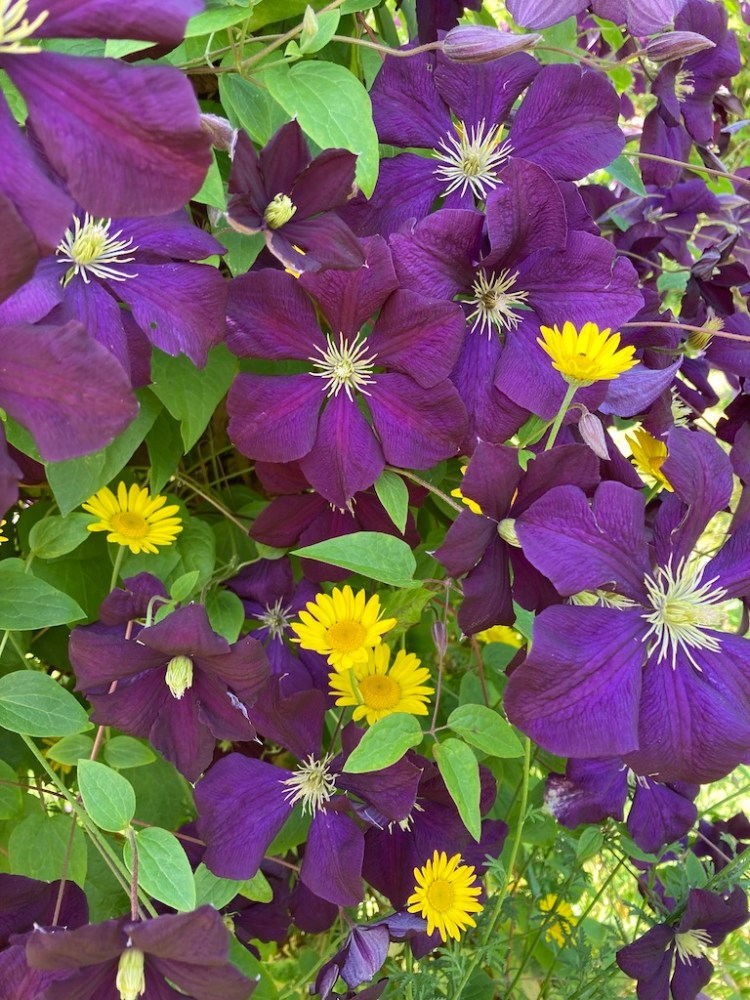 The clematis were all sprawled over the ground and had to be hauled back up – but they still flowered beautifully.